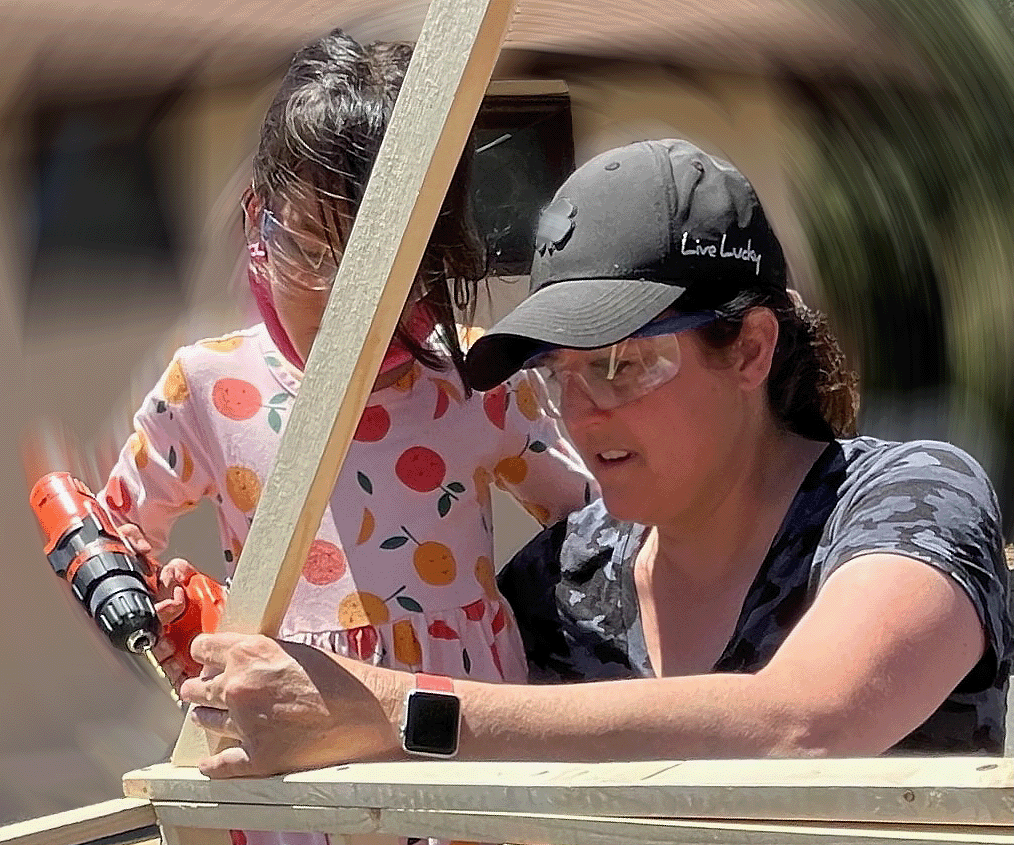Middle grade author and Makerspace/Engineering teacher Sarah Guz supports her students as they learn about compression and tension forces and how to safely use power tools.